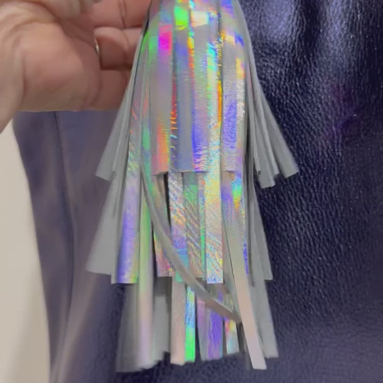 Holographic LEATHER Tassel in layers, for your bag or key ring...