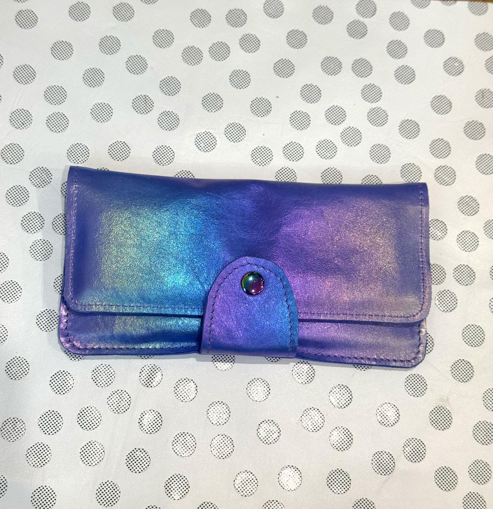 Aurora Rainbow blue tone Leather Wallet Purse or wristlet