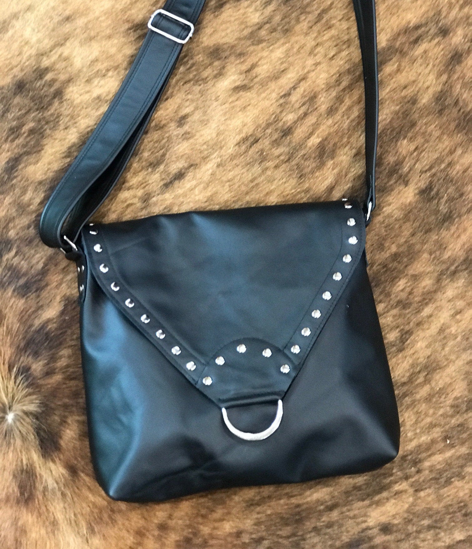 MEDIUM SIZE 3 inside pockets, leather edged and riveted. Size: 35cm wide x 30cm (13.5 inch x 12 inch) Depth at bottom: 7cm (2.8 inch)