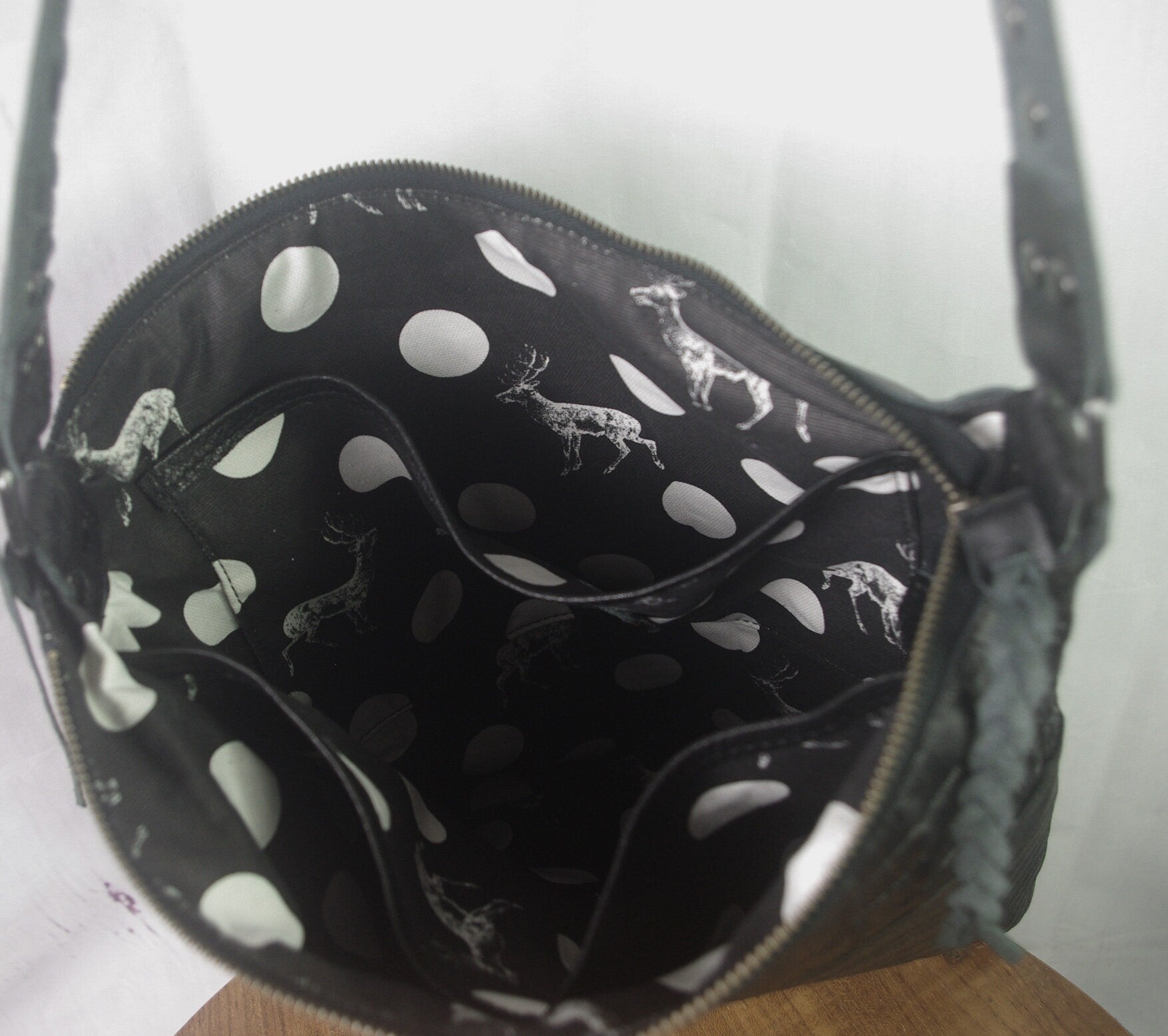 Boheme Black Embossed Leather Hobo Multi Leather Crossbody Bag