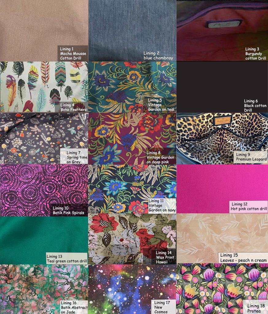 - Fully lined - see photo for Lining options and add your Lining no. to your Order Note