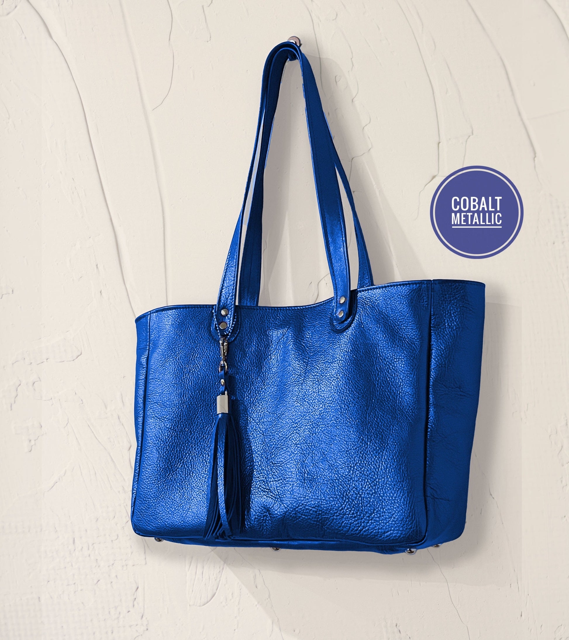 Choose colour wide Metallic Leather Tote, free zipper purse