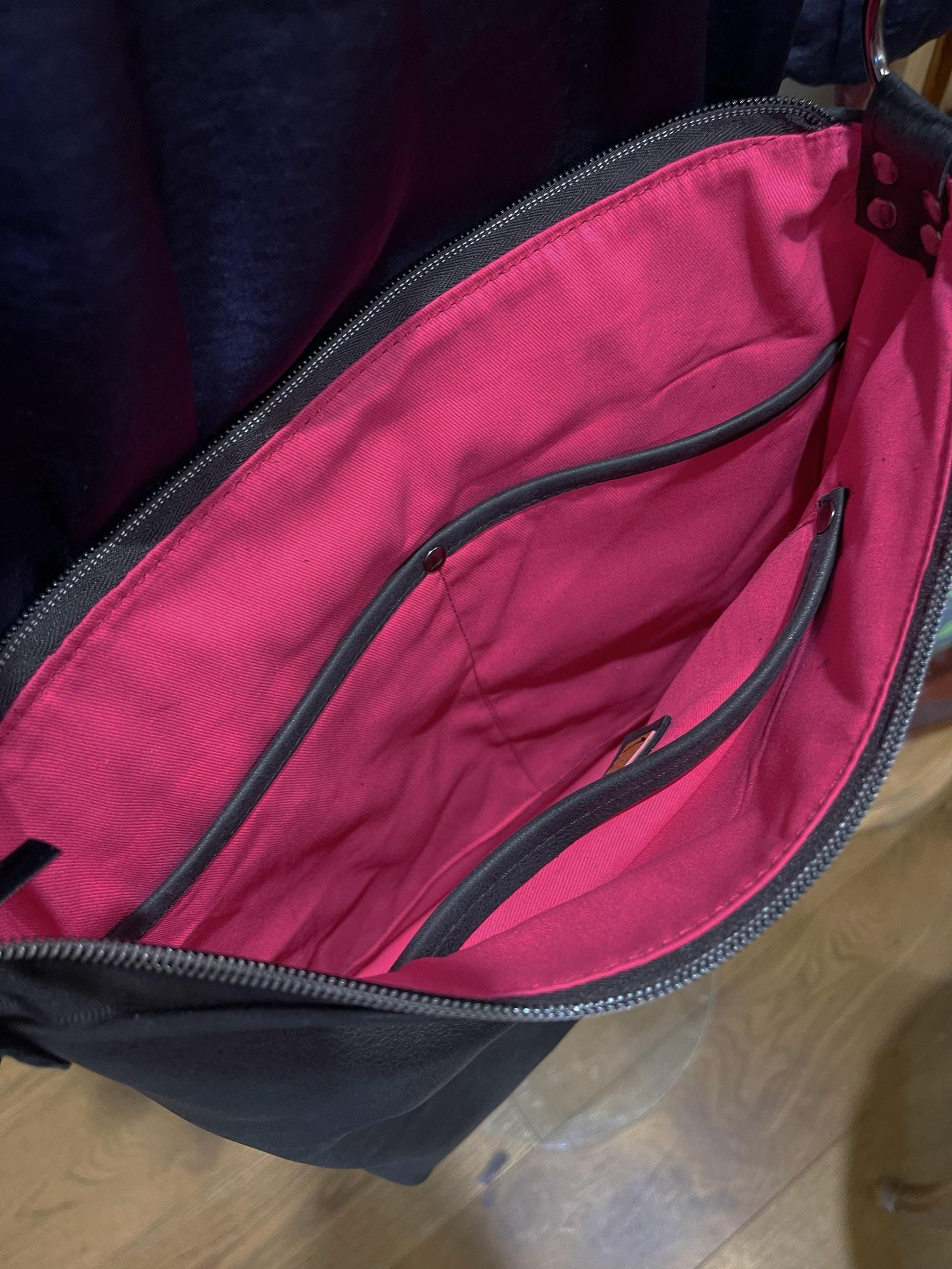 - 3 x inside slip pockets, leather edged and riveted