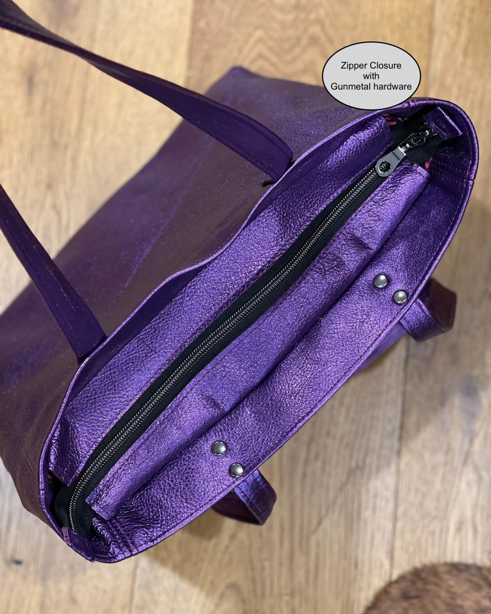 Fuchsia Pink Metallic Leather Tote, free leather purse