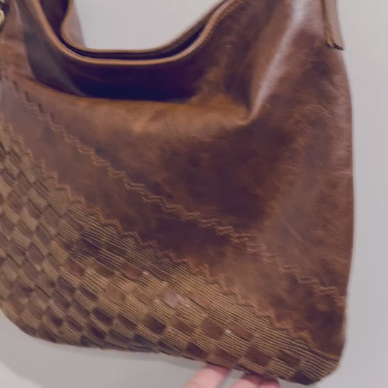 Hand woven brown Leather Boho crossbody/shoulder Bag