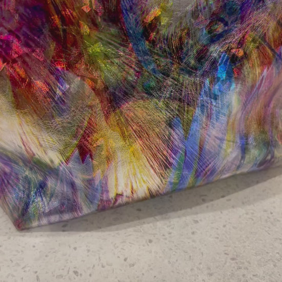 Iridescent Abstract feathers Leather makeup purse