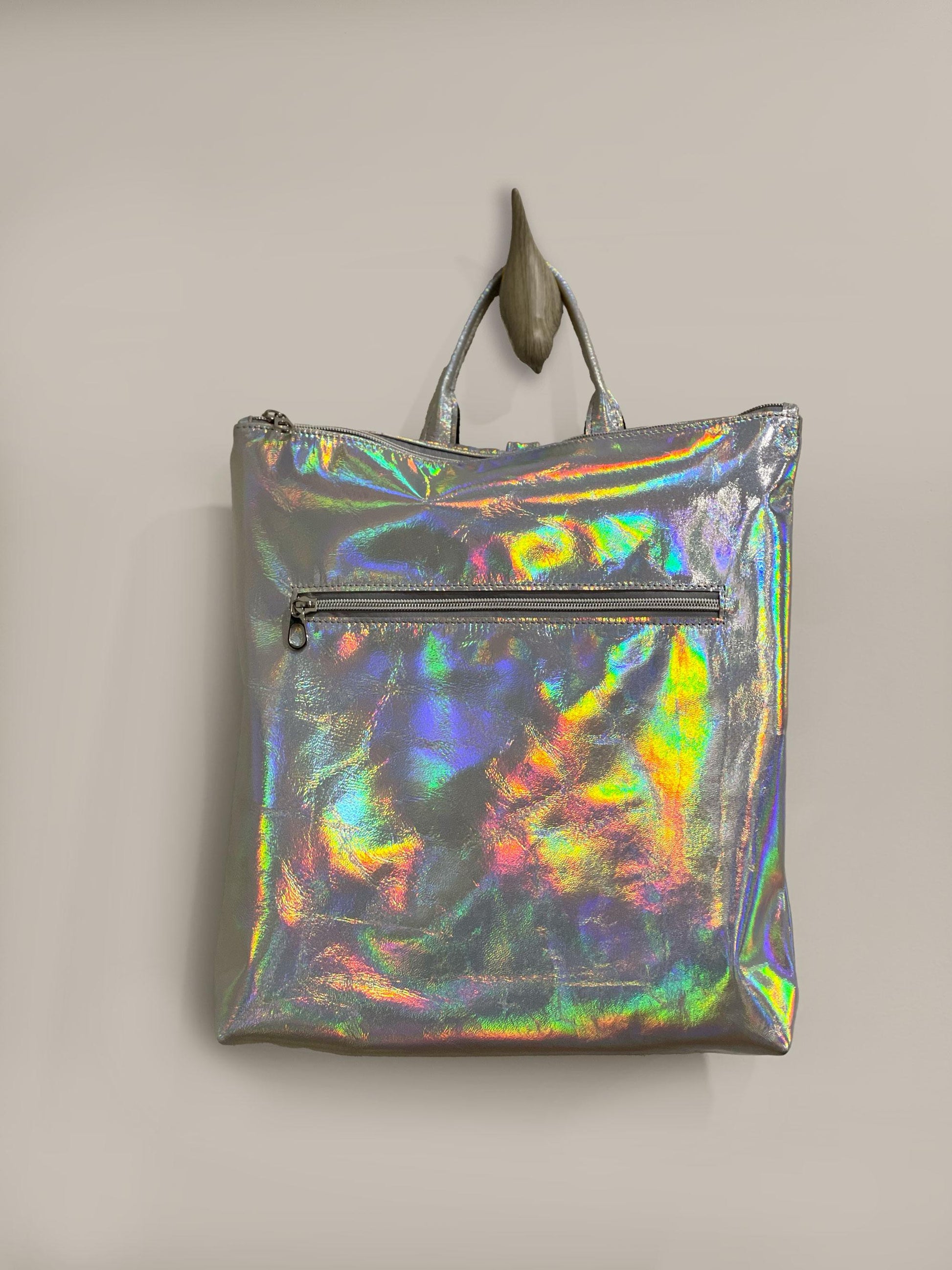 Holographic Convertible Backpack and Tote in 1 (tote straps are optional)