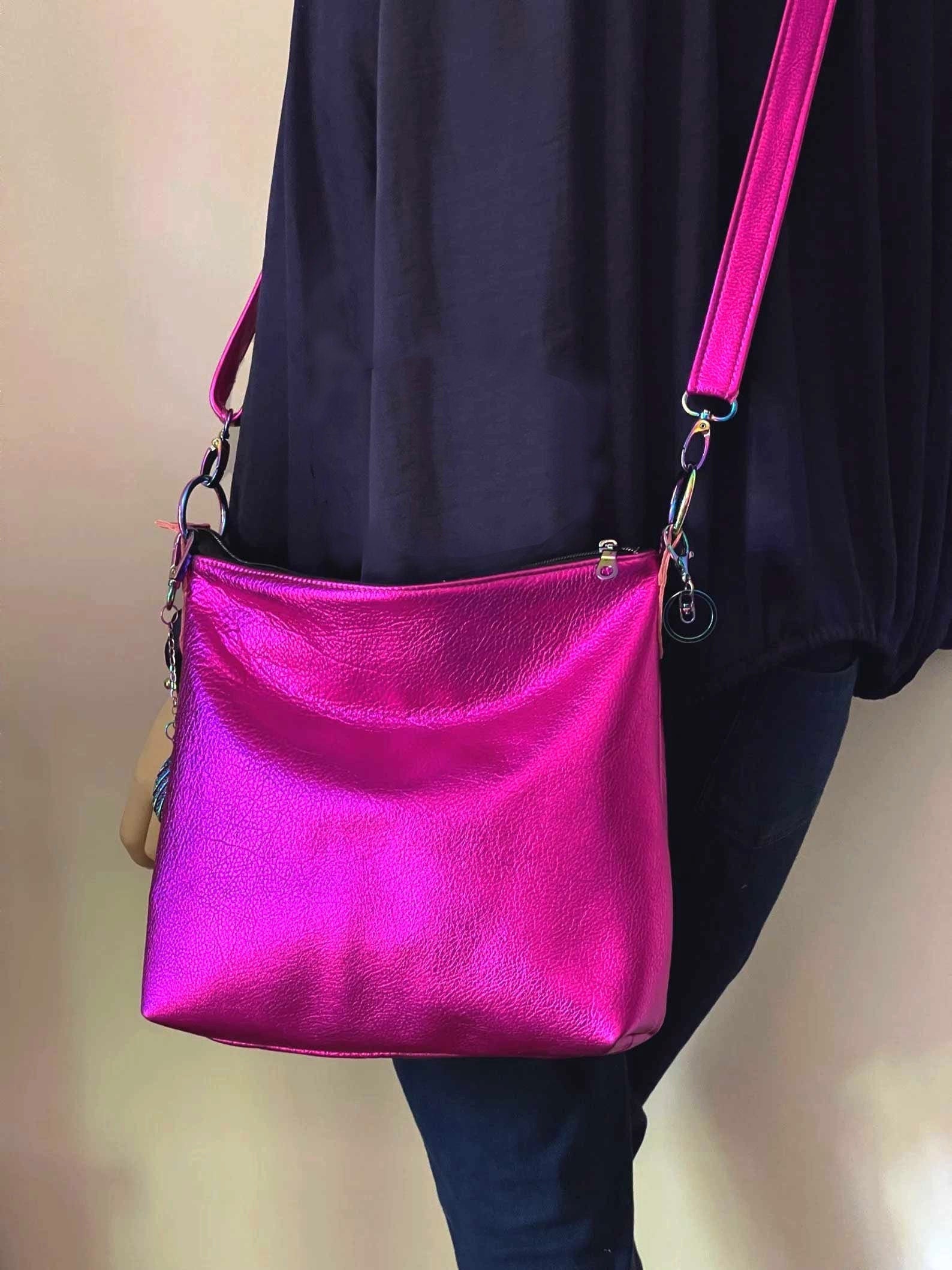 Medium (shown): 3 inside pockets W 35cm x H 30cm (13 3/4 inch x 11 3/4 inch) bag lying flat Depth at bottom: 7.5cm (3 inch) Removable adjustable strap