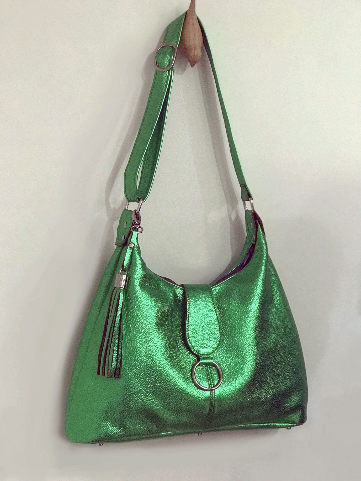 Metallic Leather tassel, bag charm, leather key ring