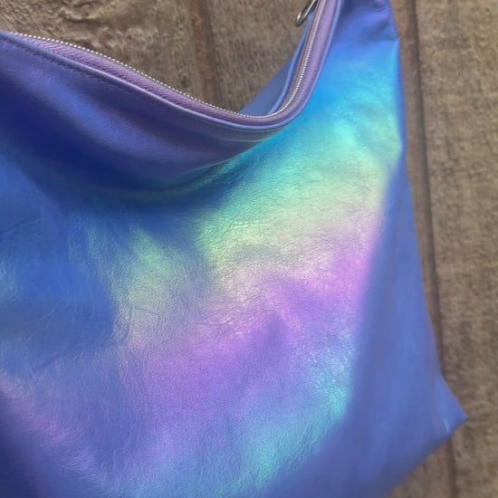 Smooth Metallic Leather Bag, in Rainbow Blue Aurora (this is the blue based Aurora leather, there is also a purple based available - shown in the video, available in shop)