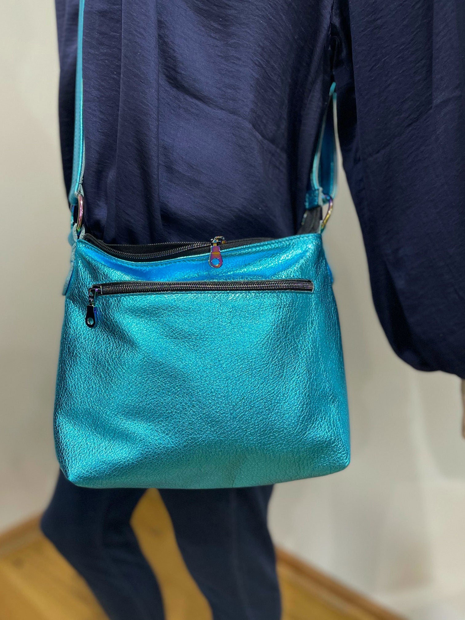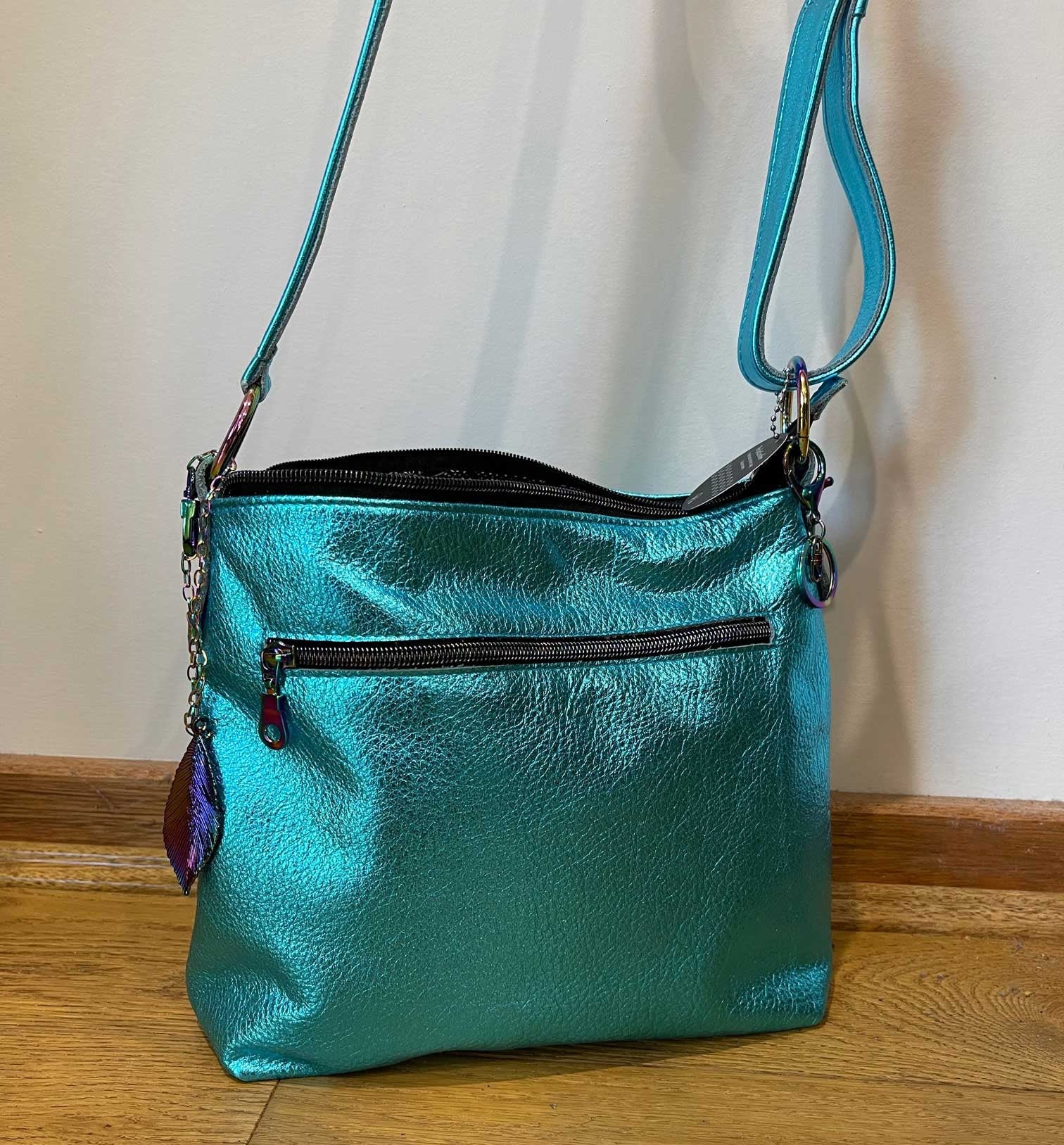Metallic turquoise crossbody bag