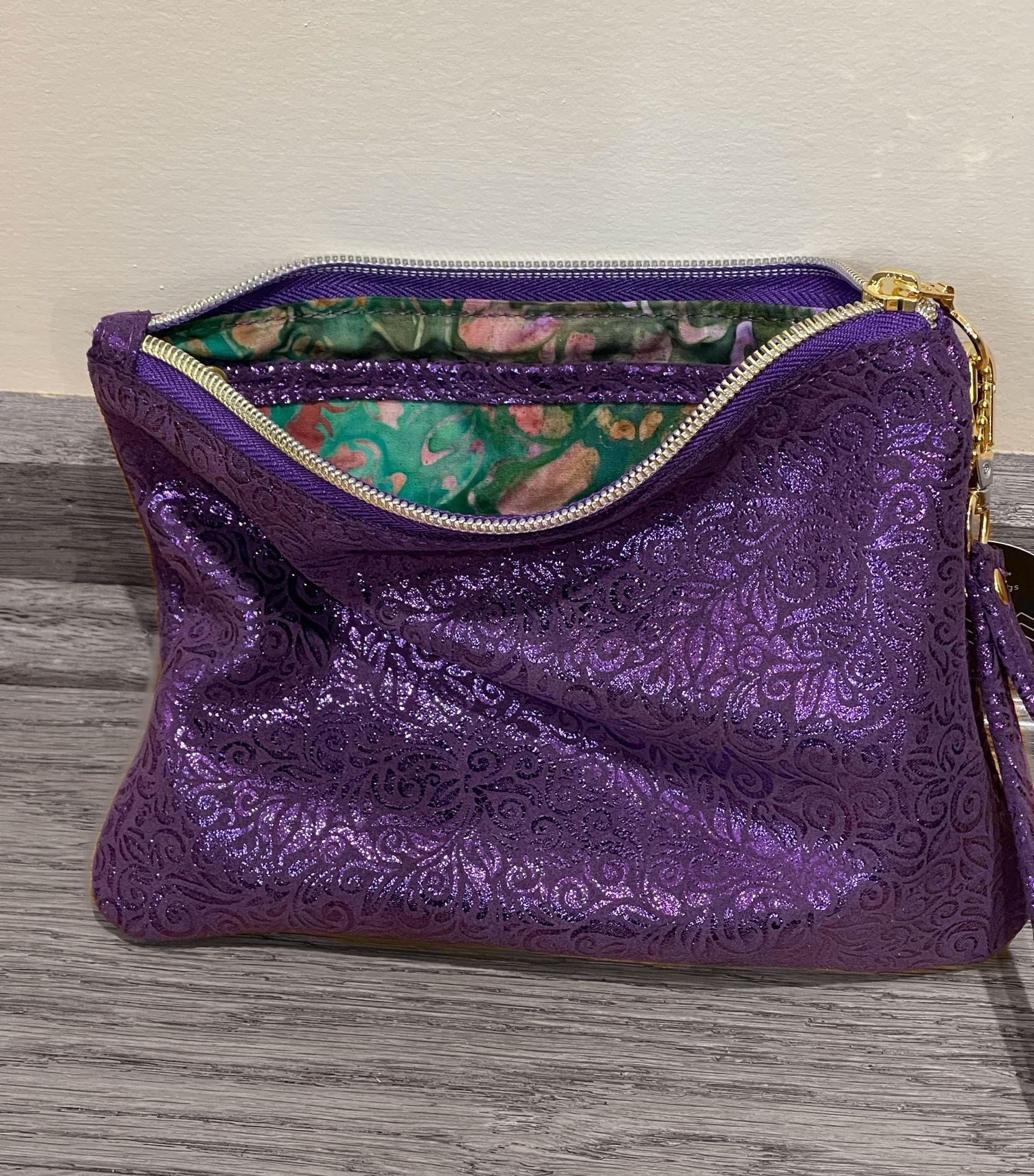 Beautiful rich soft purple metallic leather Wristlet purse and/or crossbody