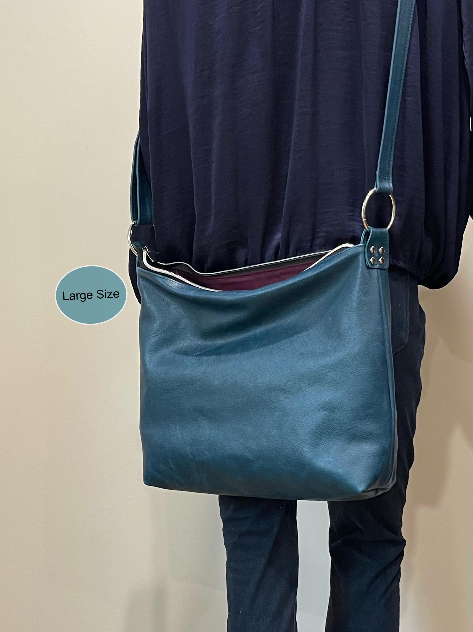 Soft full grain Teal Leather bag. Leather is thick but super soft.